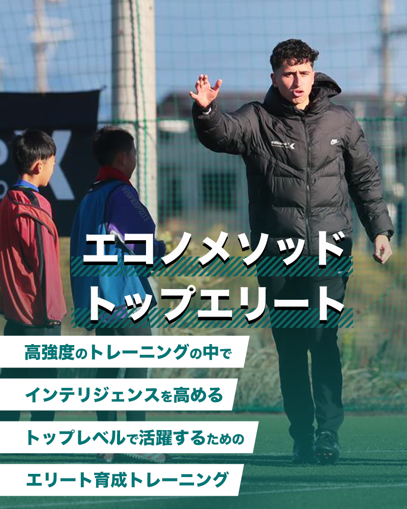 バルセロナに本社を置くサッカーサービス社は長年ヨーロッパのサッカーを研究してきた結果、トップレベルの選手とそれ以外の選手ではプレー判断に大きな差があることがわかりました。エコノメソッドとはサッカーサービス社が開発した育成メソッドで、トッププロとして活躍するために不可欠なプレー判断を磨くことに特化した指導を行っています。